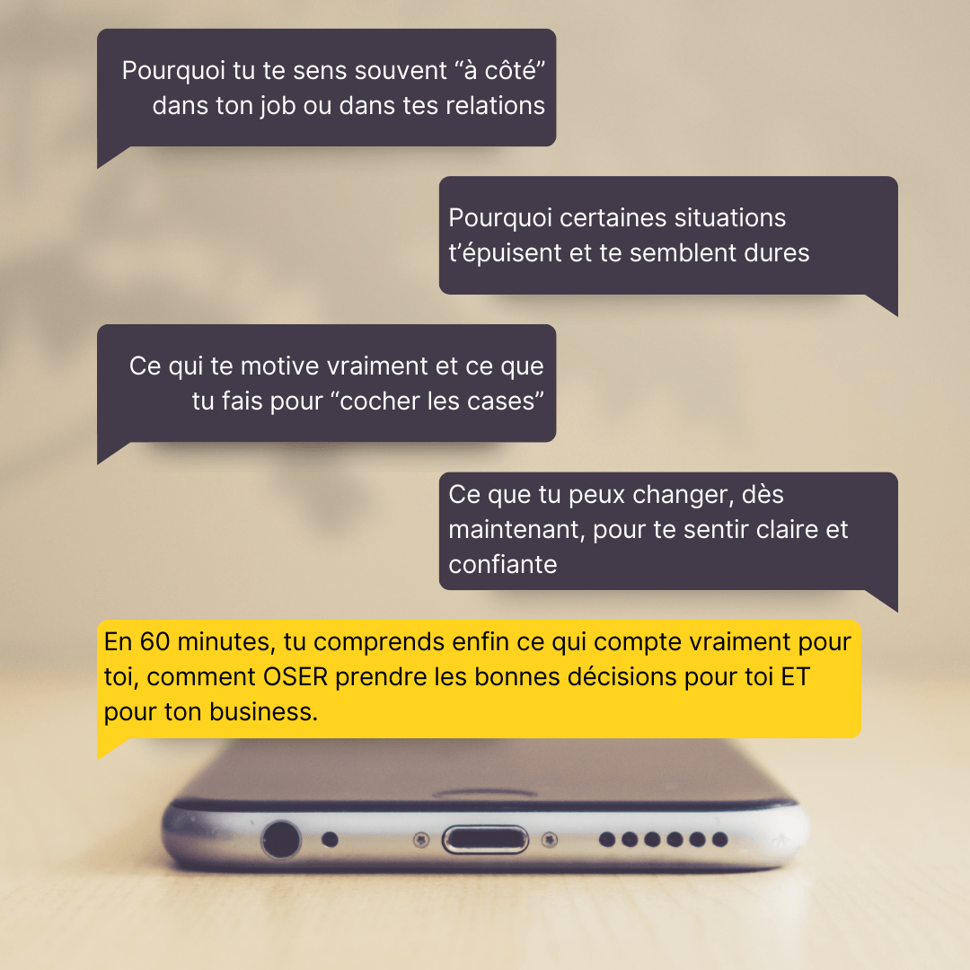 Tu comprends enfin ta façon unique d’agir, de décider et de t’exprimer – et c’est la seule manière de construire une vie (et un business) qui te ressemble vraiment.
