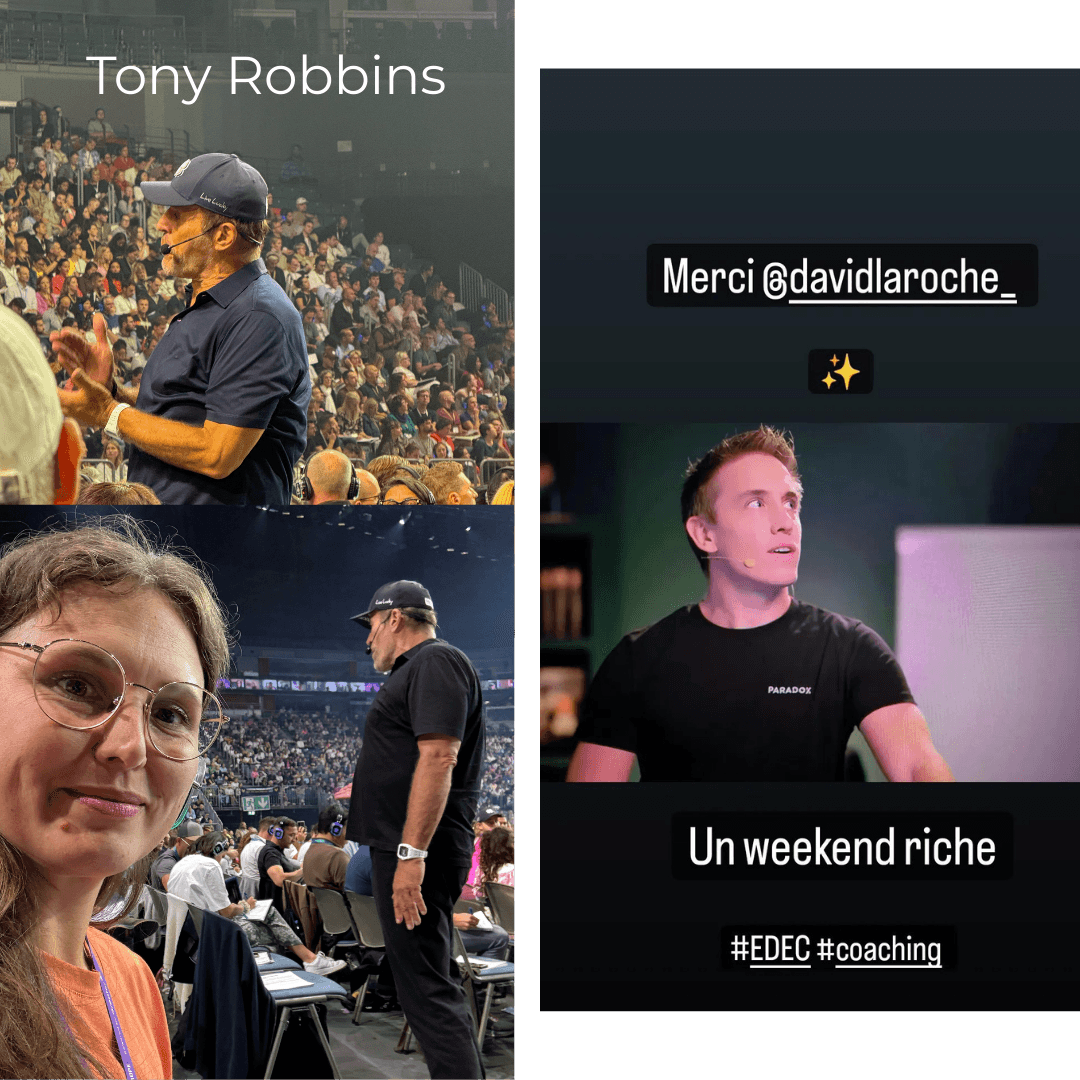 Formée par David Laroche et participante d’un séminaire avec Anthony Robbins (UPW) et même Paul Pyronnet (PNL) l’une des plus grandes références mondiales en développement personnel. Je me forme constamment auprès des meilleurs pour transmettre à mes coachées des outils concrets et puissants.