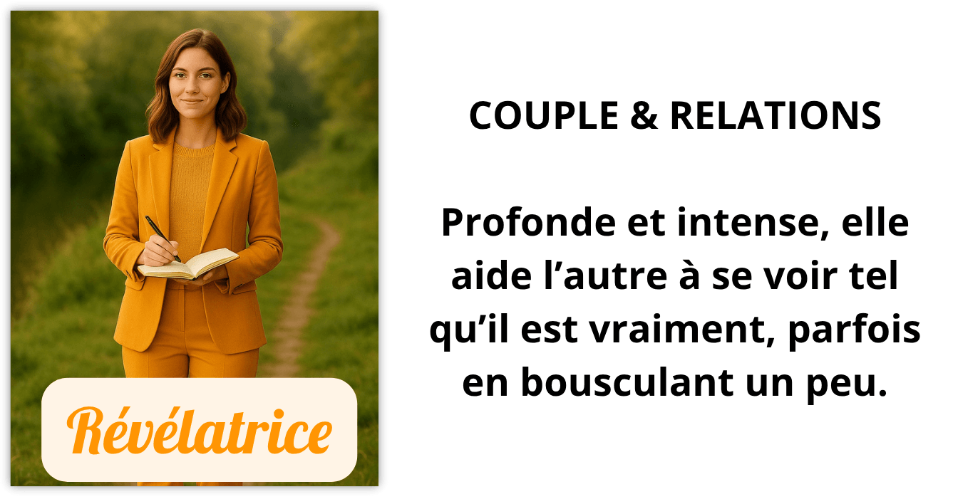 Couple & relations : la qualité de tes liens, la façon dont tu aimes et dont tu es aimée.