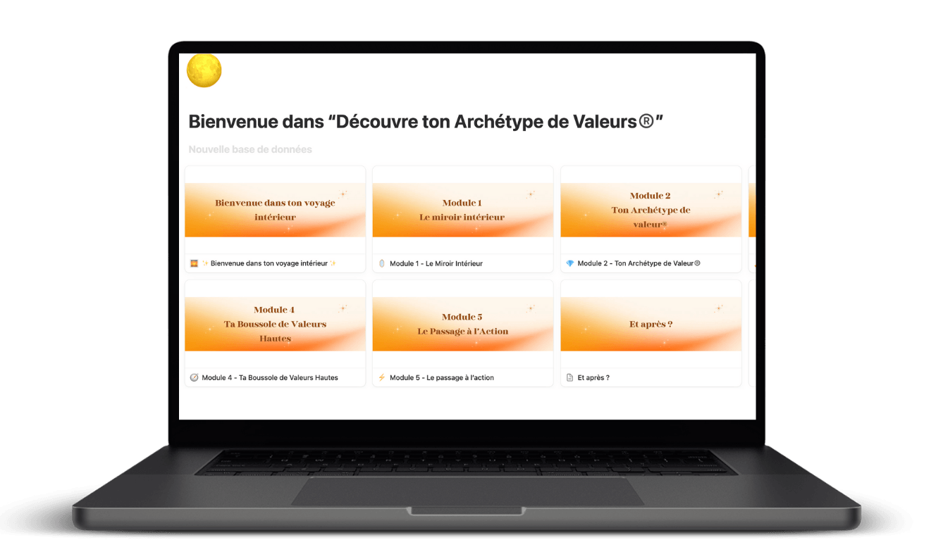 Avec Découvre ton Archétype de Valeur®, tu vas mettre des mots clairs sur ce qui fait ta valeur unique, identifier tes 3 valeurs hautes et t’appuyer sur elles pour prendre des décisions alignées et retrouver ta place naturellement.